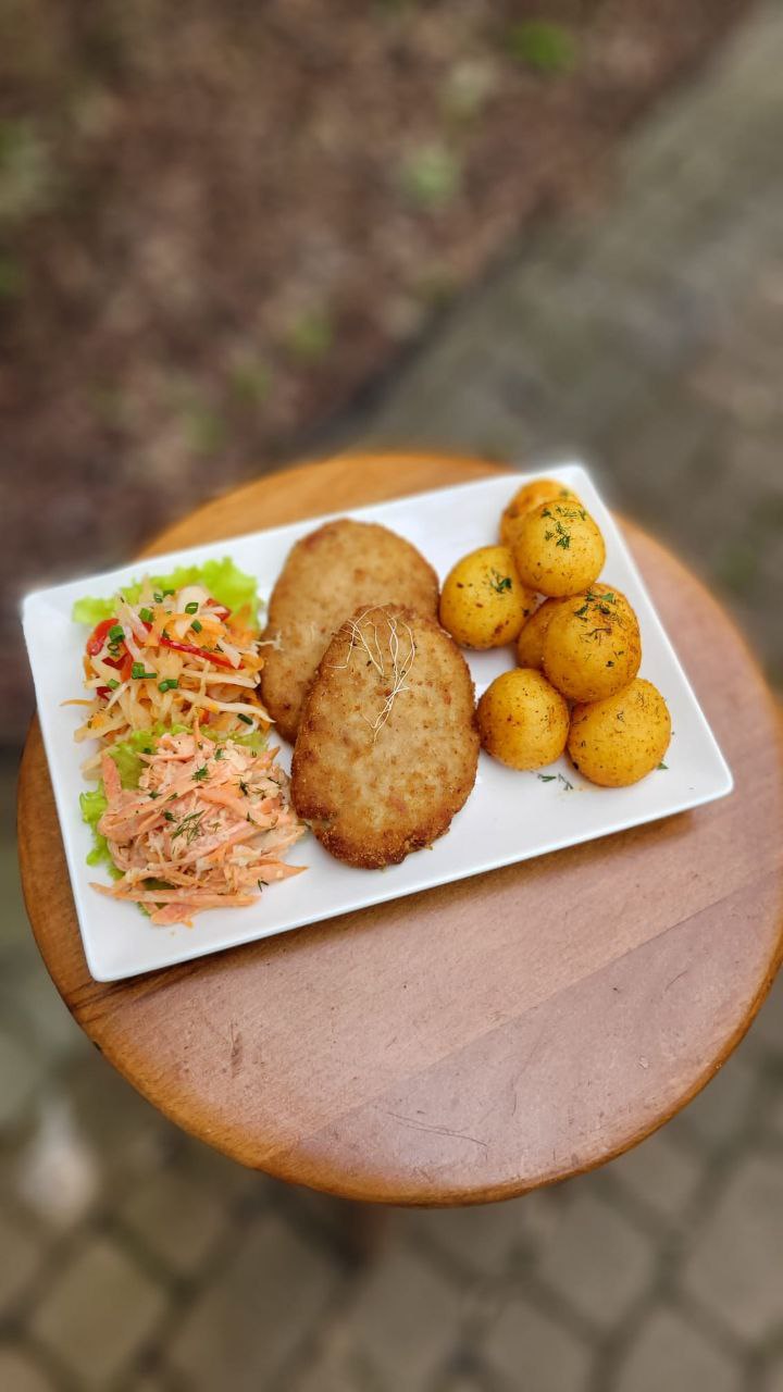 Drobiowy kotlet panierowany z ziemniakami i surówką/ +zupa