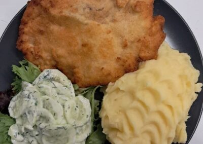 Kotlet schabowy z ziemniakami i surówką/ +zupa
