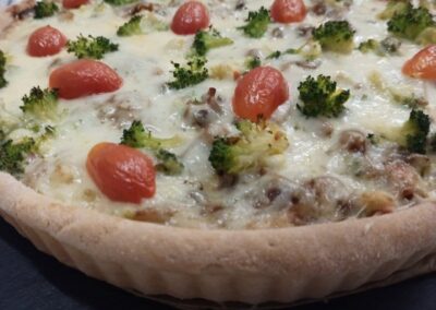 Tarta z brokułami i pieczarkami (26 sm)